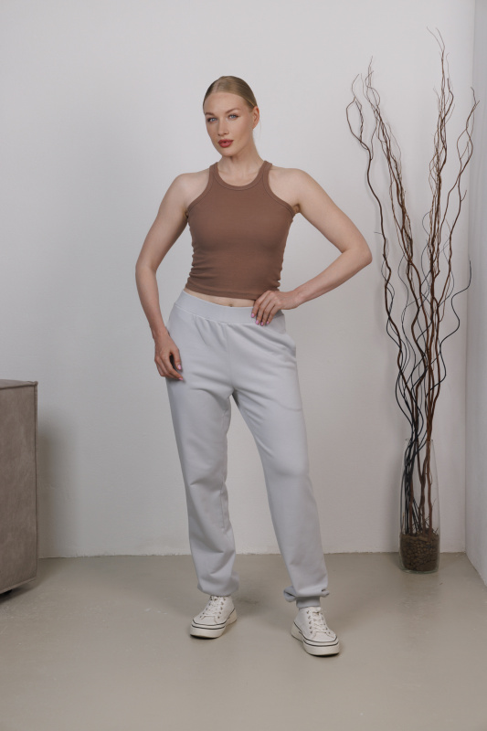 Брюки  изготовлены  из футера 3х нитки (петля), плотность  320г/м2. Кашкорсе  400 г/м2. Кулирная гладь – 180 г/м2.